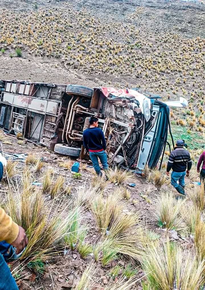 El hecho ocurrió la mañana de este sábado en el sector de Challa Grande – Confital, en el límite entre los departamentos de Cochabamba y Oruro. Según el informe inicial, el impacto provocó que el conductor del bus perdiera el control del motorizado, lo que derivó en su embarrancamiento por una pendiente de aproximadamente 100 metros.